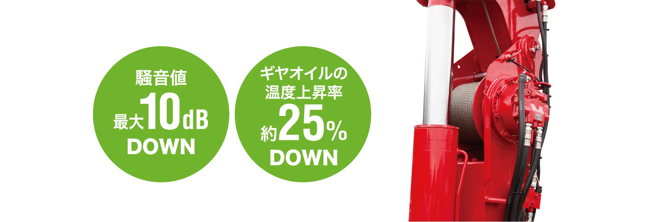 独自回路設計により、無負荷状態でのブーム伸長速度を増速し、エンジン回転数を抑制。速度重視とエコ重視の切り換えも可能で、操作性も損ないません。