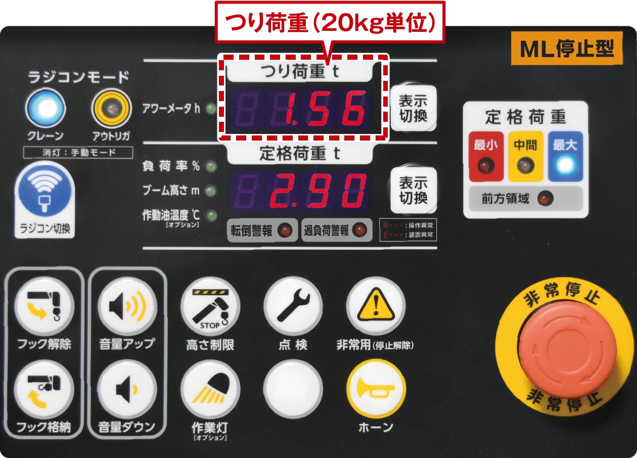 定格荷重に達すると自動で停止する[ML停止型]、警報音で注意喚起する[ML警報型]の2タイプから選べます。